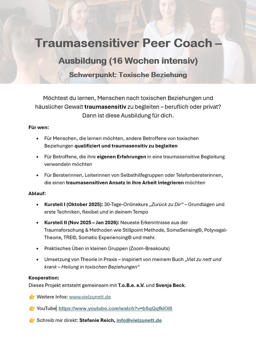 Einladung zur Onlinepräsentation der traumasensiblen Peer- Ausbildung am 29.05.2025 um 19 Uhr Svenja Beck 27. Mai 2025